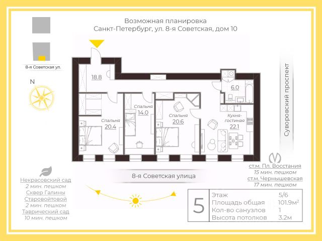Шикарная ЛОКАЦИЯ 10 из 10! До ст. метро Чернышевская 10 минут пружинистым шагом или 15 минут на каблучках, до ст. метро Площадь Восстания и Невского проспекта на одну минуту дольше.