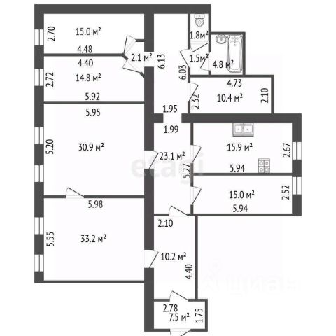 В квартире два входа, поэтому она перспективна в плане разделения ее на две квартиры.