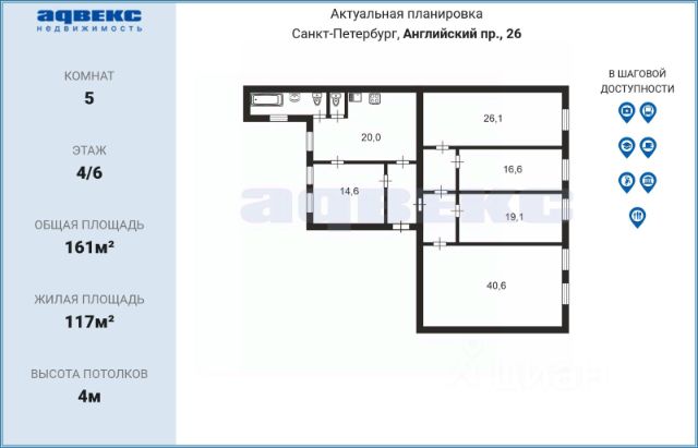 Уникальное предложение квартиры по местоположению, дому, отделке и интерьеру. Квартира 259,2 кв.м., пятикомнатная, большая кухня-столовая, три санузла, кладовые, два входа с разных парадных. Готовая к проживанию, не требуется косметический ремонт. Квартира в таком исключительном месте и неповторимом виде будет семейной ценностью и реликвией, соответствует духу Санкт-Петербурга. Находится в самом центре исторических и культурных мест города, расположение дома на набережной реки Мойки усиливает ее ценность. Квартира видовая, из всех окон открывается замечательный вид на реку Мойку и набережную, на памятник Николаю I и площадь Исаакиевского собора, легендарный отель Астория, Синий и Красный мосты. В минутах ходьбы Исаакиевский собор, Медный всадник, отель Англетер, Законодательное собрание Санкт-Петербурга, Зимний Дворец, Казанский собор, Спас на Крови, Государственный Эрмитаж, Новая Голландия, академические театры Санкт-Петербурга. Квартира располагается в бывшем доходном доме Корпуса К. Б., построенном по проекту известного архитектора Гешвенда А.Р. Класс проекта - элитный дом, архитектура - эклектика. Собственником квартиры проведен капитальный ремонт, редкий случай, когда новые бетонные перекрытия сделаны между соседними верхними и нижними этажами, заменены все инженерные коммуникации, произведена шумо-изоляция помещений. Городом проведен капитальный ремонт всего дома. Отделка и интерьер выполнены собственником квартиры в историческом санкт-петербургском дворцовом стиле, профессионально и качественно, каждая деталь продумана до мелочей. Роспись потолков, стен и проемов создавалась художниками Академии художеств им. И. Репина и Российской Академию Живописи, Ваяния и Зодчества Ильи Глазунова. Дубовый паркет, двери, оконные рамы и элементы интерьера изготовлены на заказ в санкт-петербургских мастерских. Отдельные элементы стен, проемов, эркеров и подоконники отделаны натуральным камнем оникс. Восстановленный действующий камин с аутентичными изразцами. Квартира обустроена предметами интерьера, соответствующие элементам отделки.