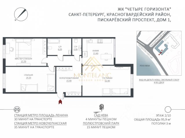 ДВА паркинга + панорамный Пентхаус. Уникальное предложение в ЖК "Новый город" - ВИДОВОЙ пентхаус с ДВУМЯ просторными местами в подземном паркинге прямо под квартирой. Квартира с панорамным видом - Река Нева, мост Петра Великого, Смольный собор, парк с Храмом и игровыми площадками, окна выходят на ТРИ стороны, центральная ориентация на Северо-Запад. Малоэтажный клубный ЖК бизнес-класса выполнен по проекту финских архитекторов, 2010 г.п.. Закрытая охраняемая территория с видеонаблюдением. Под всем ЖК расположен 2-х уровневый подземный паркинг с лифтами до дверей квартиры. Предлагается светлая 5-ти комнатная 3-х сторонняя квартира общей площадью 205 (168) м.кв. с 2-мя террасами (20 + 17 м.кв.). В составе кухня-гостиная 57 м.кв, мастер-спальня 22 м.кв, спальня детская, спальня детская, кабинет рабочий, сауна с окном, гардеробная в отдельном помещении с окнами, две ванные комнаты, кладовая. Атмосферная квартира с открытыми панорамными видами на Белые Ночи, сделана по дизайнерскому проекту, с высококачественной техникой, мебелью, отделочными материалами и инженерным наполнением. Изысканный комфорт и уют! Лучшее предложение в этой локации! Проведена система Умный дом, управляющая тёплыми полами, вентиляцией, кондиционированием, электро-приводами штор, светом (позволяет реализовывать различные сценарии освещения). Вентиляция приточно-вытяжная. Немецкая кухня Nolte со встроенной техникой Kuppersbusch. В ванных комнатах установлены дополнительно - проточный нагреватель, гидромассажная ванна, бойлер. ----- Вместе с квартирой МОГУТ быть проданы два машино-места рядом 25+ м.кв. (места НЕ включены в цену квартиры, ориентировочно - 2х1500 тыс.). Развитая инфраструктура ЖК парк, детские площадки, магазины, кафе, рестораны, детский клуб, детский бассейн, медицинские центры, салоны красоты, студия маникюра, спортивный клуб. Один взрослый собственник, полная стоимость в договоре, без обременений, никто не зарегистрирован. Продается 5-комнатная квартира на проспекте Новочеркасский в Санкт-Петербурге.