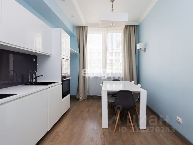 Хорошая и очень удобная планировка! Общая площадь квартиры - 76,8 кв.м. Две спальни 20,4кв.м.+ 18.4кв.м. плюс столовая-гостинная около 15 кв.м. совмещенная с кухней 9 кв.м. (при необходимости столовую-гостинную можно быстро и недорого изолировать в отдельную комнату). Спальня 20.4 кв.м. включает в себя гардеробную комнату и из этой спальни есть отдельный вход в небольшое помещение, площадью 3,5 ув.м (с окном). Высота потолков - 3.07м.