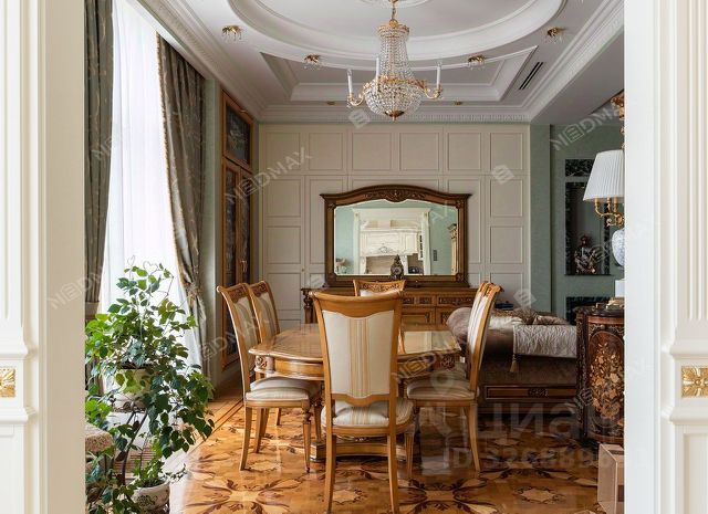 В оформлении дизайна интерьеров использованы изысканные и дорогие отделочные материалы: ценные породы дерева, паркетная доска (орех, дуб), натуральный мрамор, авторская мозаика, лепнина, оникс. В ванных комнатах установлена премиальная сантехника. Квартира оснащена системой Умный дом и дополнительной функцией охраны и безопасности. Предоставляется возможность приобрести одно парковочное место в подземном отапливаемом паркинге.