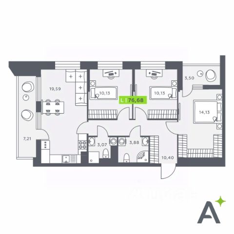 Продается просторная квартира с 2 спальнями в жилом комплексе бизнес-класса "Взлетная 16". Общая площадь квартиры составляет 71,59 м2, из которых 27,78 м2 отведено под просторную кухню-гостиную с двумя окнами. Мастер спальня 10,79 м2 со своей гардеробной и сан.узлом. вторая спальня площадью 12,07 м2. Предусмотрено место под прачечную. Новый ЖК "Взлетная 16", камерный малоэтажный дом на 68 квартир. Дом состоит из трех 5-этажных секций. Комплекс является уникальным за счет небольшого количества квартир с большим выбором продуманных планировочных решений. Важной особенностью жилого комплекса является наличие подземного паркинга на 42 парковочных места + гостевая парковка, закрытый и безопасный внутренний двор, колясочные и велосипедные в парадных, 30 кладовых помещения в подземном паркинге, как дополнительное место хранения сезонных вещей. На первом этаже комплекса расположены коммерческие помещения, где разместится инфраструктура для жителей дома фитнес-студия, коворкинг, салон красоты, пекарня, магазин и пункт выдачи интернет-заказов. Также на территории комплекса расположится детское дошкольное учреждение с площадкой для игр. Вся территория комплекса, включая паркинг и прилегающие зоны, оснащена камерами видеонаблюдения. Территория двора зонирована для максимального комфорта, предусмотрены современная детская площадка, пространства для рекреации и уединения. Ландшафтный дизайн в проекте ЖК "Взлетная 16" вдохновлен стилем французского парка, растения подобраны по принципу непрерывно цветущего сада, который не требователен в уходе и адаптирован под условия северной природы. ЖК "Взлетная 16" - идеальное пространство для спокойной семейной жизни в созвучии с динамикой городского комфорта. Строгость линий, многоплановость фасадов, внимание к деталям — вот что лежит в основе подхода к архитектурным решениям, объединяющим привычную классику и актуальность.