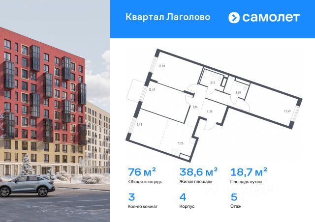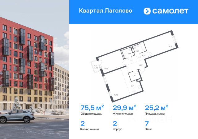 Старт продаж! 3-комнатная квартира площадью 74.55 в ЖК "А101 Лаголово" на 2 этаже. Квартира без отделки. Вид из окна на улицу. В квартире 2 санузла. Высота потолков 2.74 м. Предложения от застройщика на декабрь 2025: - Гибкая рассрочка 20 000 руб/мес. и первым взносом 10%. ОТДЕЛКА Квартира передается без отделки. Благодаря тому, что в данном типе отделки стены не возводятся, вы сможете создать удобную планировку и самостоятельно организовать зонирование комнат. КВАРТИРА С МЕБЕЛЬЮ И ТЕХНИКОЙ В стоимость квартиры включен сертификат на 100 000 рублей от партнеров Hoff и M.Видео. Вы можете увеличить сумму сертификата и добавить его в ипотеку. А также у вас будет возможность увидеть все товары вживую перед установкой и выбрать лучшие варианты для обустройства вашей квартиры. ПАРАДНАЯ. В каждой парадной предусмотрены места для хранения велосипедов и колясок, гостевой санузел и удобная зона ожидания для гостей. ДВОРЫ И ОКРУЖЕНИЕ. Просторные дворы безопасны для детей, так как свободны от машин, закрыты от посторонних и постоянно находятся под видеонаблюдением. Во дворах создается разнообразная среда для детей всех возрастов: детские площадки с батутами, тактильными дорожками и игровыми комплексами. Для активного отдыха - воркаут-площадки, столы для пинг-понга и газоны для занятий йогой. Во дворах есть и тихие уголки - зеленые гостиные с уличной мебелью, где можно поработать на свежем воздухе или отдохнуть в тишине. Из внутренних дворов комплекса можно выйти на пешеходный бульвар длиной около 900 метров. Здесь будет организовано полноценное общественное пространство с амфитеатром, уличным кафе, ручьем, фонтаном и множеством мест для отдыха и игр. Большую часть бульвара займут благоустроенные зеленые зоны и теневые сады из десятков видов деревьев и кустарников, многолетних цветов и трав, которые будут радовать глаз круглый год. "А101 Лаголово" - современный город у подножия знаменитых Дудерговских высот, в объятиях чистейших озер и зеленых живописных массивов, наполненный всем необходимым для счастливой жизни. ИНФРАСТРУКТУРА. Мы занимаемся комплексным освоением территории. Наш приоритет - доступность всех сервисов для счастливой жизни. 1. Лаголово-город 15-ти минутной доступности. Вся необходимая инфраструктура: магазины, салоны красоты, образовательные учреждения, медицинские центры находятся в 15-ти минутах пешей прогулки от любой точки жилого комплекса. Это позволяет не тратить время на долгие перемещения. 2. Представьте идеальный город, где ребенок может спокойно играть, а пожилой человек наслаждаться заслуженным отдыхом. Жилая среда нашего комплекса может комфортно использоваться как 8-летним ребенком, так и 80-летним пожилым человеком. Дома, улицы, общественные пространства, тротуары спроектированы с заботой о людях разных возрастов. 3. Мы активно развиваем авторскую образовательную экосистему "Лёрнити". Она включает строительство 8 современных детских садов (2000 мест) и 3 школ (2945 учащихся). Мы учим родителей гармонично общаться с де