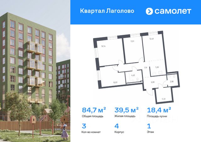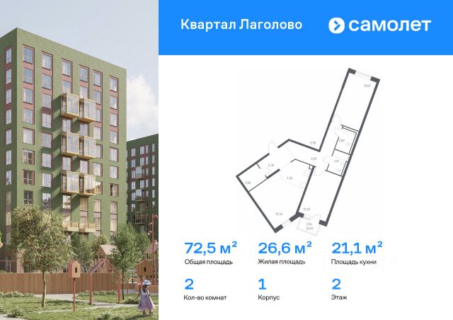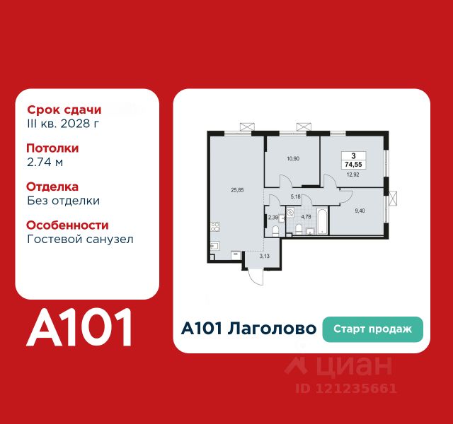Старт продаж! 3-комнатная квартира площадью 71.68 в ЖК "А101 Лаголово" на 2 этаже. Квартира без отделки. Вид из окна во двор. В квартире 2 санузла. Высота потолков 2.74 м. Особенность планировки - гардеробная. Предложения от застройщика на ноябрь 2025: - Гибкая рассрочка 20 000 руб/мес. и первым взносом 10%. ОТДЕЛКА Квартира передается без отделки. Благодаря тому, что в данном типе отделки стены не возводятся, вы сможете создать удобную планировку и самостоятельно организовать зонирование комнат. ОСОБЕННОСТИ ПЛАНИРОВКИ Из окон квартиры открывается живописный вид на зелёный пешеходный бульвар, который строится одновременно с домами. Места для хранения находятся в прихожей и жилой зоне квартиры, дополнительно можно получить доступ к кладовым на подземном уровне (площадь - 2-8 кв. м). ПАРАДНАЯ. В каждой парадной предусмотрены места для хранения велосипедов и колясок, гостевой санузел и удобная зона ожидания для гостей. ДВОРЫ И ОКРУЖЕНИЕ. Просторные дворы безопасны для детей, так как свободны от машин, закрыты от посторонних и постоянно находятся под видеонаблюдением. Во дворах создается разнообразная среда для детей всех возрастов: детские площадки с батутами, тактильными дорожками и игровыми комплексами. Для активного отдыха - воркаут-площадки, столы для пинг-понга и газоны для занятий йогой. Во дворах есть и тихие уголки - зеленые гостиные с уличной мебелью, где можно поработать на свежем воздухе или отдохнуть в тишине. Из внутренних дворов комплекса можно выйти на пешеходный бульвар длиной около 900 метров. Здесь будет организовано полноценное общественное пространство с амфитеатром, уличным кафе, ручьем, фонтаном и множеством мест для отдыха и игр. Большую часть бульвара займут благоустроенные зеленые зоны и теневые сады из десятков видов деревьев и кустарников, многолетних цветов и трав, которые будут радовать глаз круглый год. "А101 Лаголово" - современный город у подножия знаменитых Дудерговских высот, в объятиях чистейших озер и зеленых живописных массивов, наполненный всем необходимым для счастливой жизни. ИНФРАСТРУКТУРА. Мы занимаемся комплексным освоением территории. Наш приоритет - доступность всех сервисов для счастливой жизни. 1. Лаголово-город 15-ти минутной доступности. Вся необходимая инфраструктура: магазины, салоны красоты, образовательные учреждения, медицинские центры находятся в 15-ти минутах пешей прогулки от любой точки жилого комплекса. Это позволяет не тратить время на долгие перемещения. 2. Представьте идеальный город, где ребенок может спокойно играть, а пожилой человек наслаждаться заслуженным отдыхом. Жилая среда нашего комплекса может комфортно использоваться как 8-летним ребенком, так и 80-летним пожилым человеком. Дома, улицы, общественные пространства, тротуары спроектированы с заботой о людях разных возрастов. 3. Мы активно развиваем авторскую образовательную экосистему "Лёрнити". Она включает строительство 8 современных детских садов (2000 мест) и 3 школ (2945 учащихся). Мы учим родителей гармонично о