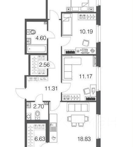Продаётся e4 комнатная квартира (евро) в жилищном комплексе "Энфилд" (корпус Дом 18 секция 2). Общая площадь 81,1 кв. м, площадь комнат 13,14 кв.м, 13,37 кв.м, 13,31 кв.м. 2 санузла. Квартира расположена на 3 этаже 12 этажного дома. Срок сдачи корпуса IV квартал 2027 года. Современный жилой квартал "Энфилд" от компании Arsenal объединяет в себе преимущества хорошей экологии и удобного расположения рядом с городом. Квартал расположен на территории Мурино-Бугры, в 10 минутах от метро Девяткино. В состав ЖК "Энфилд" войдет 17 домов высотой до 12 этажей, 14 из них уже построено и сдано. На территории работает два детских сада и школа с углубленным изучением иностранных языков. Квартал славится красивой территорией, пешеходным бульваром с фонтанами, детскими и спортивными площадками, инфраструктурой для отдыха. В 5 минутах ходьбы расположен гипермаркет "Лента", из квартала предусмотрен удобный выезд на КАД.