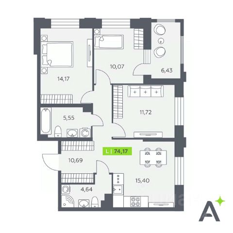 Продаю просторную светлую двустороннюю квартиру в ЖК "Лондон" (часть проекта "Семь столиц") в Кудрово, развитом районе со всей инфраструктурой.