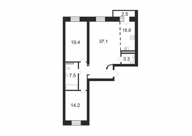 Три светлые изолированные комнаты: 12 м², 15 м² и 18 м²