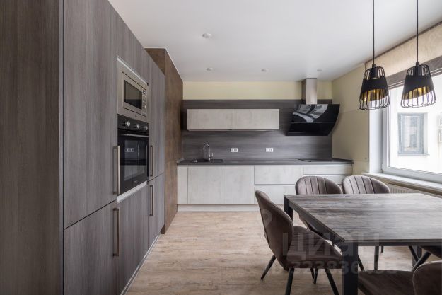 Продается двухкомнатная квартира с дизайнерским ремонтом и кухней-гостиной в современном жилом комплексе в историческом центре Петербурга.