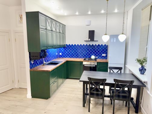 Отделка, оборудование и ремонт: Выполнен качественный ремонт ( с заменой электропроводки, труб водоснабжения и отопления), выполнен дизайн в современном классическом стиле с применением премиум материалов (окна - деревянные стеклопакеты; дубовые полы Sibеriаn fоrеst; на потолках сохранена и отреставрирована первоначальная лепнина; кондиционер; квартира оборудована системой внешнего видеонаблюдения). Итальянская кухня, шпон вишни, в стоимость включены: холодильник Siemens, газ.плита Electrolux, духовой шкаф Bosch, водонагреватель Bosch, Сантехника Jacob Delafon и Grohe. Имеется 2 закреплённых парковочных места во дворе.