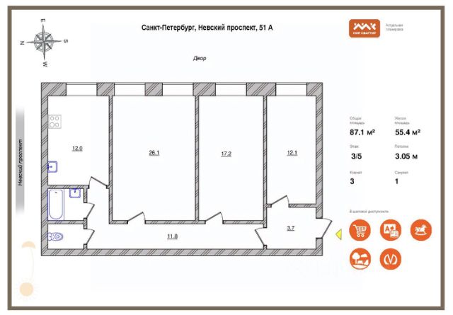 Квартира будет интересна как для сдачи в аренду, так и для самостоятельно проживающих.