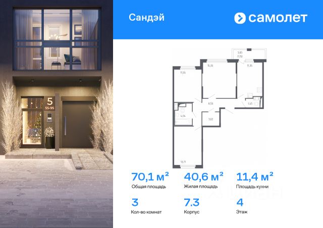 Строим кварталы для жизни с заботой о будущем. Предлагается 3-комнатная квартира комфорт-класса 70,12 кв.м в корпусе 7.3 на 3 этаже, в ЖК "Сандэй" Квартира с чистовой отделкой. Доступность дополнительных опций уточняйте у застройщика. Приобрести квартиру возможно по специальным акциям от застройщика, с текущими условиями акций можно ознакомиться в блоке "Акций". Цена динамическая и может отличаться, уточняйте актуальность у застройщика. Сандэй современный жилой комплекс на юго-западе Санкт-Петербурга у парка Сосновая поляна. Мы уже построили 7 средне-этажных домов, вся социальная и бытовая инфраструктура уже работает, рядом есть детские сады, школы, поликлиники и магазины проживание будет очень комфортным. Прямо под окнами большой зеленый парк для прогулок - Сосновая Поляна В 7 минутах пешком расположена железнодорожная станция, от которой можно за 25 минут добраться до центральной части города Балтийского вокзала. В 15 минутах езды самые известные пригороды Петербурга: Стрельна, Петергоф, а также берег Финского залива.