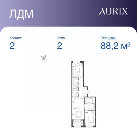 Продается 2-к квартира без отделки в ЖК "ЛДМ". Общая площадь квартиры — 88.2 кв. м, этаж 2 из 9. Тип дома — монолитный. Цена указана при 100% оплате. Описание из материнского фида