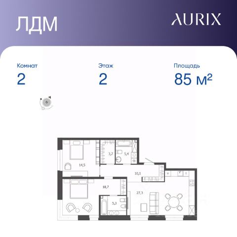 Продается 2-к квартира без отделки в ЖК "ЛДМ". Общая площадь квартиры — 85 кв. м, этаж 2 из 8. Тип дома — монолитный. Цена указана при 100% оплате. Описание из материнского фида
