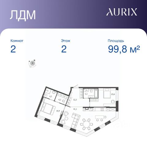 Продается 2-к квартира без отделки в ЖК "ЛДМ". Общая площадь квартиры — 99.8 кв. м, этаж 2 из 9. Тип дома — монолитный. Цена указана при 100% оплате. Описание из материнского фида
