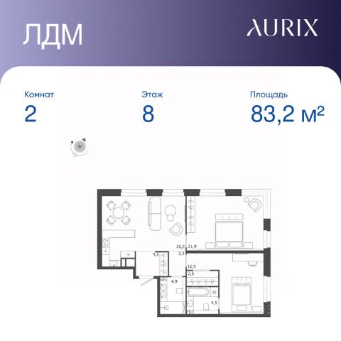 Продается 2-к квартира без отделки в ЖК "ЛДМ". Общая площадь квартиры — 83.2 кв. м, этаж 8 из 9. Тип дома — монолитный. Цена указана при 100% оплате. Описание из материнского фида