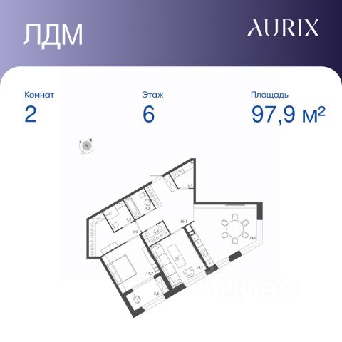 Продается 2-к квартира без отделки в ЖК "ЛДМ". Общая площадь квартиры — 97.9 кв. м, этаж 6 из 8. Тип дома — монолитный. Цена указана при 100% оплате. Описание из материнского фида