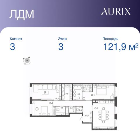 Продается 3-к квартира без отделки в ЖК "ЛДМ". Общая площадь квартиры — 121.9 кв. м, этаж 3 из 8. Тип дома — монолитный. Цена указана при 100% оплате. Описание из материнского фида