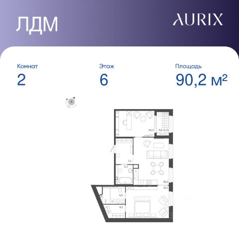 Продается 2-к квартира без отделки в ЖК "ЛДМ". Общая площадь квартиры — 90.2 кв. м, этаж 6 из 9. Тип дома — монолитный. Цена указана при 100% оплате. Описание из материнского фида