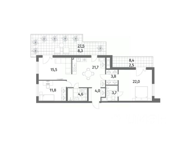 Продается квартира площадью 90.5 м² на 1 этаже 1 секции в Парусная 1 от компании ГК "ТРЕСТ". Площадь кухни 23.1 м². Семейный жилой комплекс бизнес-класса "Парусная 1" от ГК "ТРЕСТ" расположен в исторической части Васильевского острова, рядом с набережной Галерной гавани и Финским заливом в окружении парков и живописных мест для прогулок. Уникальный квартал с великолепным благоустройством, просторными квартирами, закрытой охраняемой территорией и подземными паркингами. Проект жилого квартала из 12 корпусов, объединенных общим стилобатом, разработан архитектурным бюро "Студия 44". 59% квартир в жилом комплексе семейные двух и трехкомнатные. Архитектура базируется на простоте геометрических форм и пластического разнообразия фасадных решений. Использование контрастного темного и светлого облицовочного кирпича и декоративной штукатурки, поддерживает исторический стиль застройки Васильевского острова. Фасадные решения представлены сложносочиненной системой выступов и смещений. За счет постановки домов в шахматном порядке между ними образуются транзитные пассажи и уютные камерные дворики. Часть квартир на первых этажах обустроена индивидуальными террасами-патио, а на верхних предусмотрены квартиры с просторными открытыми террасами. Во всех квартирах будет установлено панорамное остекление и системы умного дома, высота потолков до 3,2 м. На территории квартала уже ведётся строительство детского сада на 280 мест и средней общеобразовательной школы на 825 учащихся. В шаговой доступности находятся более десяти детских садов и школ, также запланировано строительство школы на 1375 мест в 5 минутах от квартала. Дворы домов проектируются закрытыми и свободными от автомобилей. Проектом предусмотрен двухуровневый паркинг на 721 машиноместо с доступом на лифте, парадным входом и бесконтактной системой въезда с определением гос. номера автомобиля. Внутриквартальная территория приподнята над поверхностью земли на 3,5 м. Образующееся между домами "плато", куда ведут пологие лестницы и пандусы, предоставляет жителям благоустроенное пространство где предусмотрены безопасные игровые и спортивные площадки для детей разного возраста, амфитеатр, а также места для общего досуга и общения жителей. Проектом предусмотрены колясочные и велопарковки. Отсутствие ступенек и крылец обеспечит удобный доступ в парадные для всех категорий граждан. Проект комплексного благоустройства и ландшафтного дизайна выполнен студией DEREVO PARK. Приватные дворы домов объединены общей концепцией в основе которой лежит взаимодействие человека с водой. Здесь появятся водные чаши, водопад, канальцы для сбора дождевой воды, детские зоны для игр, а также малые архитектурный формы. В просторных входных группах с панорамными окнами и высокими потолками будут созданы удобные зоны ожидания для гостей с мягкой мебелью, журнальными столиками и декоративными вазами. Квартиры в ЖК "Парусная 1" можно приобрести с современной и стильной отделкой от застройщика. Для п