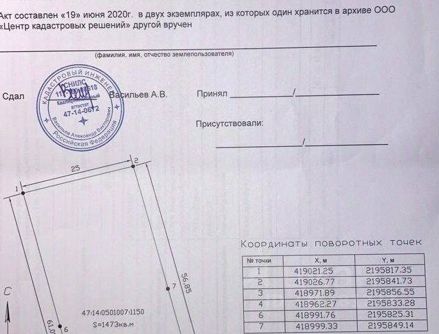 Прямоугольный участок, поднят плодородным грунтом, на участке есть сосны/ели высотой 2-3 метра. По одной из границ участка хвойный лесок. Соседи с двух сторон, участок угловой. На соседнем участке скважина 102 метра, доступ разделим Электричество есть, уже на участке. Коттеджный посёлок круглогодичного проживания, в пешей доступности лес, магазины /поликлиника/школа/детский сад 15 минут езды. Кадастровый номер 47:14:0501007:126