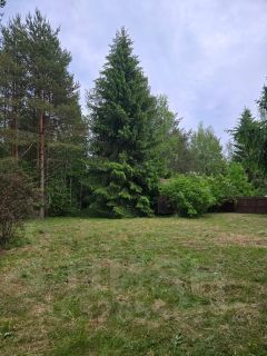 Участок расположен на возвышенности в окружении сосен, с крыши дома открывается прекрасный вид на кроны окружающих его деревьев.