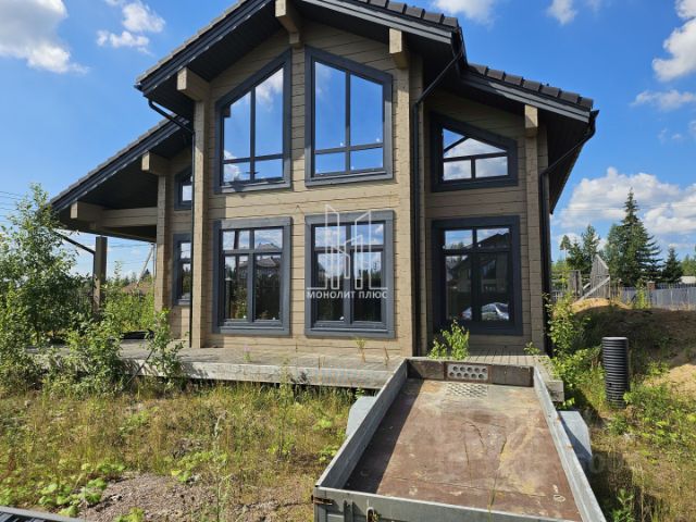 Одноэтажный дом 140 м. кв., с просторной планировкой и хорошей освещённостью. В настоящее время в доме проводится реконструкция, вся прежняя отделка полностью снята. Домовладение расположено на обособленном земельном участке 12 соток. С северной стороны к участку примыкает порядка 10 соток водоохранной зоны ручья. С запада к участку прилегает роща, это внутрисадоводческие природоохранные территории площадью более 30 соток. Роща расчищается от поросли, периодически убираются упавшие или опасные деревья, высажено 40 дубков в виде двойного кольца. Фактически участок уже более 20 лет имеет гораздо большую площадь, что по закону о кадастре даёт право увеличить его кадастровую площадь ещё на 5 соток. На востоке в 200-ах метрах вниз по ручью находится озеро Щучье. Подъезд к участку асфальтирован. Дорога без пробок, на выбор либо по Новоприозерскому, либо по Староприозерскому шоссе. Новоприозерское шоссе, трасса Сортавала, это автомагистраль имеющая разделитель встречного движения и освещение, что очень важно для безопасности движения (до КАДа можно доехать за 20 минут). Охрана, въезд по пропускам, видеонаблюдение участка. Есть магазин, детская и спортивная площадки, родник, река, озеро. Местность поселения многоуровневая, пересечённая, много деревьев, зелени. Живописные окрестности, западная граница СНТ выходит в реликтовые леса тянущиеся на многие километры. Каменистый ручей, протекающий рядом с домом, это совершенно удивительное природное явление и только ради него стоит поселиться в этом месте. В силу своей камерности ручей легко воспринимается, создаёт чувство домашней, ручной, говорящей природы. В двухстах метрах вниз по течению ручей впадает в озеро Щучье. На озере со стороны СНТ обустроена своя небольшая пляжная зона, на которую перекрыт доступ автомобилей. В окрестностях озера живописные места, дороги и тропинки для пеших или вело прогулок.
