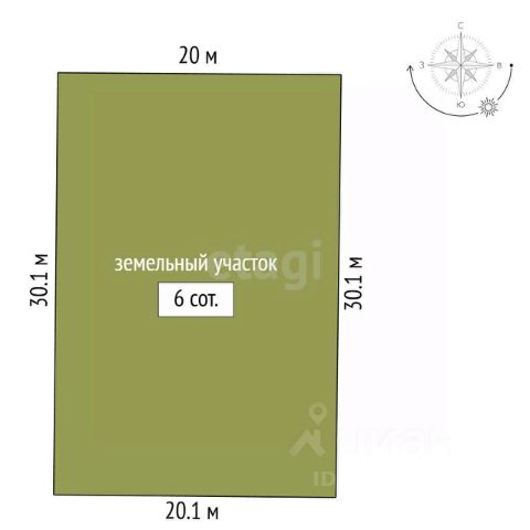 Участок правильной прямоугольной формы 19,5 * 30,5 метров, сухой, огорожен с трех сторон, сделан широкий въезд на участок, стоянка для 2-3 авто.