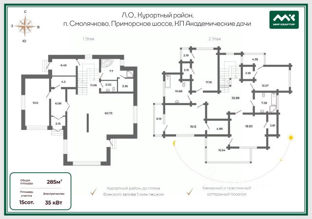 Этот особняк расположен в одном из самых перспективных и экологичных уголков Приморского района — в Ольгино. Здесь вы в обнимку с зелёными массивами, парками и набережными Финского залива, но буквально в пяти минутах от делового центра Петербурга и Лахта-Центра — узлового пункта притяжения международного бизнеса и жизни города.