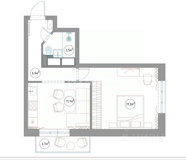Общая полезная площадь студии составляет 6,7 квадратных метров.