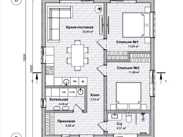Стены — газобетон + кирпич, с армопоясом по всему периметру. Дом тёплый и долговечный.