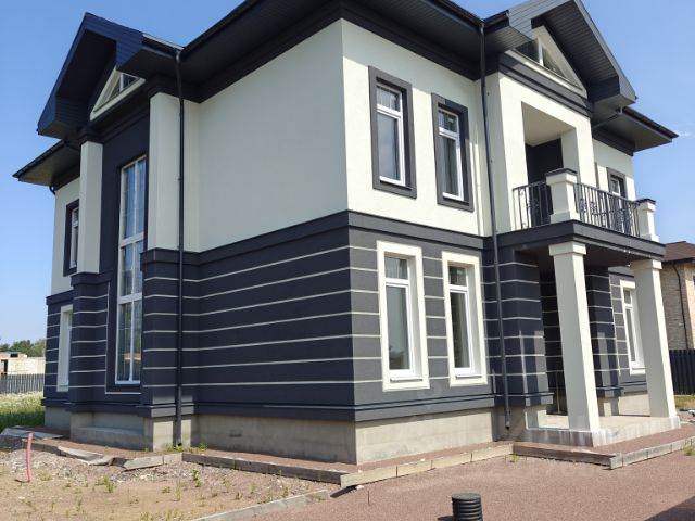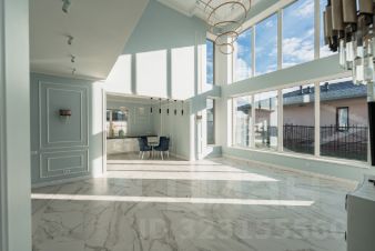 Предлагается к покупке трехэтажный дом 594,7 кв. м, с террасой 40 кв. м с панорамным остеклением, гаражом на три а/м и банным комплексом. Элегантный объект со стилистикой Ар-деко: много блеска, полутона природных красок, четкая геометрия каждого помещения. Баланс между металлом, деревом, камнем и стеклом. Место, где много света и воздуха. В доме 7 спален, 4 санузла, кабинет, гостиная-кухня-столовая, детские, кинотеатр, технические помещения и мансардная часть, куда выведены все инженерные узлы. Первый этаж единое пространство, в котором соединены гостиная с камином с отделкой из оникса, кухня и столовая с выходом на террасу. Кухня с итальянскими комплектующими и техникой Kuppersbusch. Зонирование делает особенно красивым сверкающие люстры и отделка камнем. Второй этаж это приватная зона. Пять спален. Большой холл с местами для хранения. Ванная комната с окном - 17,5 кв. м отделана мрамором и спроектирована так, чтобы всем было комфортно. Мастер-спальня с огромной кроватью от Fendi, брутальные лампы и мебель от Eichholtz. Стены спальни обшиты тактильно приятным текстилем. Мастер-гардеробная комната изыскана, функциональна и вместительна. Каждая из остальных спален индивидуальна. Они прекрасно подходят для разнополых детей различного возраста. Во всех спальнях дубовый паркет. Особое место в доме занимает кинозал на третьем этаже, где по проекту запланирован еще бильярд. Две гостевые спальни и санузел. Система кондиционирования и приточно-вытяжная вентиляция. Два водяных контура: первый отапливает дом, второй зону въезда. Отопление газовое. Банный комплекс из клееного бруса Honka с сауной, может рассматриваться, как гостевой дом. По внешнему периметру - система видеонаблюдения. В доме все коммуникации городские: электричество, газ, вода, канализация. На участке общей площадью 1200 кв. м сделан ландшафт и мощение. Продаю дом в Петергофе, кол-во спален: 4..