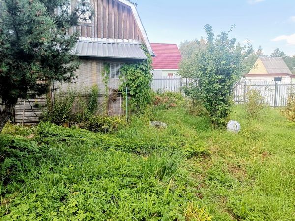 Участок г-образной формы, домик в глубине участка, уединенно и далеко от дороги. Проход к дому через сад. Прекрасные соседи.