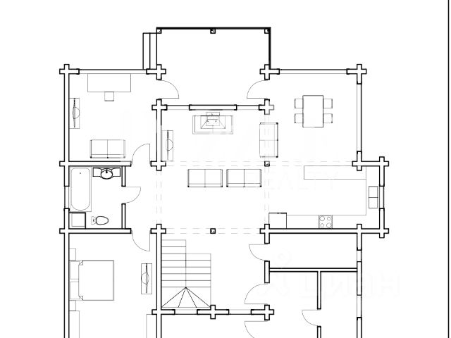 * Просторный зал с камином, кухня-столовая с выходом на террасу, спальня с гардеробной и собственной ванной, кабинет, сауна, гостевая ванная, уютные спальни на втором этаже и просторная игровая комната