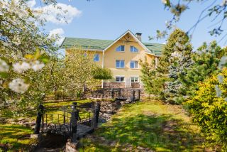 Загородная резиденция в Велигонтах: элитная жизнь в гармонии с природой В продаже домовладение в деревне Велигонты, в двух километрах от съезда с КАДа по Ропшинскому шоссе. 20 минут - императорские дворцы Петергофа и Стрельны, 40 минут - центр Петербурга. Полностью благоустроенный, ровный и сухой земельный участок площадью 20 соток, на территории которого высажен плодовый сад, декоративные насаждения, обустроен облагороженный естественный пруд с водопадом и уютной зоной отдыха. Также на участке расположены: - беседка для барбекю с открытой печью; - гостевой дом с баней; - отдельно стоящий крытый плавательный СПА бассейн с турбопротивотоком; - гараж на две машины; - домик охранника. В дополнение к участку есть задний двор площадью около 8 соток (из которых три оформлено официально), на котором установлен батут, детские качели, теплица, навес для парковки квадроциклов, хранения дров и т.д. Двухэтажный дом с мансардой площадью 416 кв.м. - идеальное воплощение элегантности, комфорта и премиального уровня жизни. При отделке использованы материалы премиум-класса: в комнатах и коридорах - полы из массива твердых пород древесины (дуб, карельская береза, бук), на полу в кухне-гостиной и санузлах - плитка из натурального гранита, подоконники из натурального мрамора, итальянские люстры. Вся мебель изготовлена на заказ из ценных пород дерева, сантехническое оборудование от ведущих мировых производителей. Планировка: На первом этаже расположены роскошная кухня-столовая с выходом в сад, уютная каминная гостиная, гардеробная; На втором этаже - мастер-спальня с выходом на террасу и собственным санузлом с хаммамом, вторая спальня, детская, прачечная. Мансарда: третья спальня и кабинет. Коммуникации: - В гаражной зоне установлен генератор с АВР для обеспечения автономного и бесперебойного электроснабжения. - Газовая котельная. - Два септика (на основной дом и на гостевой), скважина с питьевой водой. Категория - земли населенных пунктов, ИЖС. Звоните, оперативно организую показ, который обязательно станет началом Вашей новой жизни! Большой коттедж с красивой территорией в сельском поселении Горбунковское Ломоносовского района.