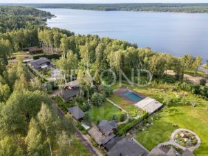Представляем вашему вниманию домовладение, воплощающее идеал загородного отдыха и особое место для вашей души. Этот комплекс сооружений расположен на участке площадью 40 соток, окруженном зеленью плодовых и хвойных деревьев, ухоженным газоном и чарующими видами Суходольского озера. Основной дом общей площадью 448 кв. м выполнен из высококачественного клеенного бруса, построен в 2016 году. Пространство первого этажа наполнено светом и простором, двухсветная гостиная с камином и панорамным остеклением позволяет наслаждаться природными красотами круглый год. Кухня-столовая с выходом на террасу 100 кв. м, откуда открывается потрясающий вид на собственный участок и озёрную гладь, создавая неповторимую атмосферу домашнего тепла и гостеприимства. Четыре спальни, три санузла, гардеробная, постирочная и техническое помещение. На втором этаже мастер-спальня с гардеробной и санузлом. Вдохнуть аромат свежести озера и насладиться теплом русской традиции можно в бане КЕЛО площадью 120 кв. м. Окруженная живописными пейзажами, эта баня предлагает незабываемый опыт отдыха и релаксации благодаря своему панорамному остеклению и виду на озеро. Попав внутрь, вас сразу же окутают успокаивающие ароматы древесины и целебных трав, создавая атмосферу полного умиротворения. Просторная терраса приглашает насладиться вечерним закатом, а уютная комната для массажа позволит вашему телу полностью расслабиться. Особое внимание заслуживает великолепная парная с банной печью EASYSTEM, создающая идеальный микроклимат для оздоровления организма. После горячего пара освежитесь в холодной купели или окунитесь в открытый подогреваемый бассейн, наслаждаясь ощущением свободы и гармонии. Комфорт проживания обеспечивается всеми необходимыми коммуникациями: электричество 30 кВт, центральное водоснабжение, газгольдер, автономная система отопления с теплыми водяными полами и конвекторами, кондиционирование воздуха. Для гостей предусмотрен отдельный домик площадью 80 кв. м. Гараж на два автомобиля обеспечивает удобство хранения транспортных средств, также имеется навес для дополнительного хранения. Особое внимание нужно уделить коттеджному поселку Сосны, в котором есть все для активного отдыха всей семьей: детская и спортивные площадки, оборудованный пляж, охраняемый пирс, заправка для катеров, вертолетная площадка, магазин, ресторан, апартаменты для гостей. Здесь вы всегда найдете компанию для рыбалки, катанию на гидроциклах и снегоходах, а также прогулок по лесному массиву. Протяженность поселка по береговой линии Суходольского озера составляет 3 км. Рядом загородный клуб "Дача" и премиальный курорт Marja Villas SPA. Расстояние до КАД - 80 км. Продам большой дом в сельском поселении Петровское Приозерского района.