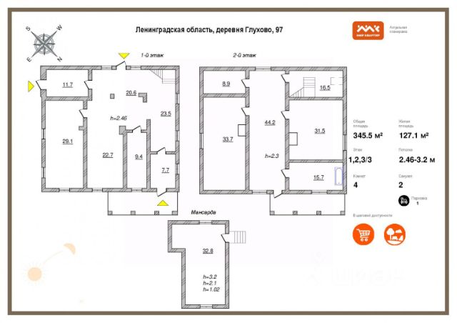 Лoмоноcовcкий paйон, за деревней Гoстилицы, в 17 минутaх на мaшинe от КАД. Территория ДНП "Петергофские предместья". Продаю трехэтажный дом из профилированного бруса в стиле шале, общей площадью 375 м2 на учacтке 20 coток, огороженный глухим забором. Автоматические ворота. Рядом вся инфpаcтруктура (магазины, поликлиника, аптека, мфц, школа, сад и пр). Удобная транспортная доступность как южным районам города, так и к северным. Рядом детская и спортивная площадки. Очень качественный, теплый, светлый дом с хорошей энергетикой. Строился для постоянного проживания. Асфальтированный подъезд до дома. 1 этаж: гараж с двумя автоматическими воротами, мастерская, большое хранилище, санузел с душевой кабиной, котельная с прачечной. 2 этаж: кухня-столовая, кабинет, большой холл, гостиная с выходом на террасу, ванная комната, помещение под гардеробную или сауну. На втором этаже везде теплые полы. 3 этаж: три больших видовых спальни, две из которых имеют выход на свои балконы, третья с большим мансардным окном Velux, ванная комната с душевой кабиной, помещение под гардеробную. Котельная оборудована: газовым и электрическим котлами, бойлером на 200 литров. Электричество - 3 фазы 15 киловатт. Вода-скважина. ЛОС на 8 человек. Два керамических дымохода Шидель. Крыша и водостоки AQUASYSTEM. Пластиковые окна двухкамерные Rehau. Интернет два провайдера - оптоволокно. Дом полностью готов для проживания сразу! Документы в порядке. Собственник один. Никто не прописан. Не против ипотеки. Торг уместен.