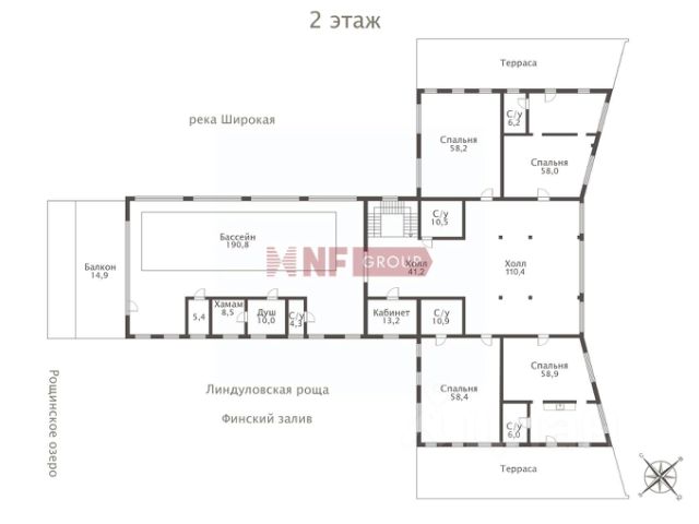 Арт. 97450465 В продаже роскошный разноуровневый Дом с дизайнерским ремонтом в современном коттеджном поселке "На Заречной" в окружении хвойного леса поселка Рощино. В посёлке единый архитектурный ансамбль и благоприятная социальная среда. Дом охраняется частной службой, реагирующей в течении 2-х минут, однако за все годы владения вокруг абсолютно тихая и спокойная обстановка. Уникальность предложения в том, что дом находится на возвышенности, и занимает крайнее местоположение: с трёх сторон сосны и ели, и лишь с одной - соседи, которых не видно благодаря каскадной изгороди. Дом построен из клееного деревянного профилированного бруса производства "НЛК Домостроение" известным застройщиком Olymp Group, с опытом более десятка загородных поселков бизнес-сегмента. Дом был приобретен у застройщика в 2014 году, в 2016 была выполнена отделка. После завершения работ по ландшафтному дизайну эксплуатировался с 2017 года исключительно по выходным, поэтому состояние близко к новому. Площадь дома 293м2 включает в себя: Первый этаж: `Кухня-столовая 18 м2 укомплектована современной техникой известных брендов; `Гостиная 30 м2 с камином и вторым светом высотой 5,5 метра; `Кабинет 20 м2, который можно использовать в качестве четвёртой спальни; `Большой гостевой санузел. Второй этаж: `Мастер спальня 25м2 с выходом на террасу. Из ванной комнаты - выход на балкон; `Две спальни по 18м2 с отдельным санузлом. Цокольный этаж: `СПА с гидромассажным бассейном, сауной и хамам; `Укомплектованная постирочная, кладовая; `Помещения технического обслуживания с отдельным входом и удобствами; `Гараж. Также на участке располагается Гостевой дом 73м2, включающий в себя: `Гараж; `Кухня-гостиная со вторым светом; `Санузел с окном; `Спальня на втором этаже. Участок 17 соток ИЖС, с холмистым ландшафтом и вековыми соснами. Обустроена отдельная крытая зона барбекю. Установлен открытый подогреваемый бассейн. На участке растёт вишня, черника и другие плодовые. Въезд на территорию осуществляется откатными воротами на пульте. Участок расположен вдали от шумных дорог, подъездные пути асфальтированы. В 300 метрах находится Рощинское озеро. В пешей доступности развитая инфраструктура посёлка - все необходимые для жизни магазины, кафе и пекарни, школы, детские сады поликлиники. На комфортном расстоянии 2 км - жд-станция Рощино, с возможностью за полчаса добраться на Ласточке до Финляндского вокзала. 70 км от центра Санкт-Петербурга, 45 км от КАД, 12 км от трассы "Скандинавия". Отопление дома смешанное: теплые водяные полы и радиаторы, обогрев которых осуществляется качественным газовым котлом Buderus. Водоснабжение от поселковой скважины, центральная канализация! В доме приточно-вытяжная система вентиляции, система кондиционирования. Приглашаем Вас на просмотр наилучшего дома Вашей мечты! Классный большой дом класса в поселке городского типа Рощино Выборгского района.