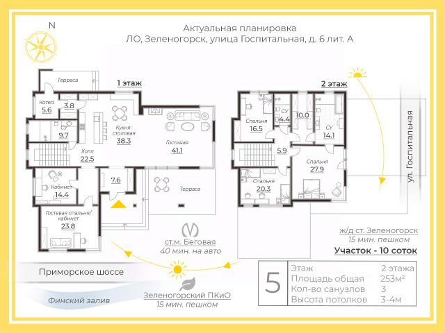 Предлагается к покупке трехэтажный дом из кирпича в парковой части Зеленогорска. Дом построен по индивидуальному проекту в 2022 году и имеет общую площадь - 386 кв. м. Толщина стен 750 мм, черепица с гарантией производителя 35 лет, шведская водосточная система, энергосберегающее панорамное остекление, перекрытия и лестница - железобетонные. В отделке использованы кованые элементы, камень, венецианская штукатурка, хрусталь. В стоимость включена мебель из массива производителей Европы и Скандинавии. За счет панорамного остекления и цветового решения - дом получился очень светлым и просторным. Все помещения имеют правильную геометрию. На 1 этаже: просторный холл, гостиная с подготовкой под камин, кухня-столовая с отдельным выходом на территорию, комнаты отдыха и гостевая спальня, помещение со сделанными выводами под сауну, 3 санузла, оборудованная котельная. На 2 этаже: 3 спальни с гардеробом, ванная комната 15 кв. м, балконы 10.5 кв. м и 20 кв. м. На 3 мансардном этаже: спортзал и игровая с двумя спальными зонами. Дом расположен в глубине парковой зоны, на ровном участке - 1065 кв. м. Имеет магистральное газоснабжение, с увеличенными допусками. Электроснабжение 15 кВт, 380 В. Артезианская скважина. Локальная канализация. Инженерные системы электроснабжения, вентиляции, отопления, водоснабжения, водоотведения ливневой канализации и дренажа профессионально спроектированы, согласованы и смонтированы с соблюдением гарантийных обязательств. У дома уникальная локацияон находится в тихой парковой части Зеленогорска, при этом в шаговой доступности песчаные дюны Финского залива, Золотой пляж и вся инфраструктура: магазины, рестораны, школы: музыкальная, художественная, общеобразовательная, спортивная, математический лицей, детский сад, поликлиники, аптеки, банки, ж/д вокзал. До Санкт-Петербурга на а/м - 40 минут.