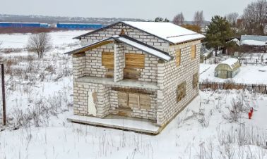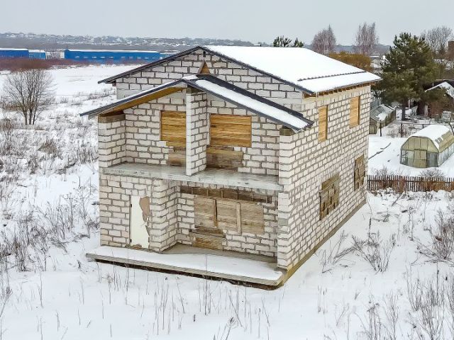 - Материалы: тёплая монолитная плита (350 мм), газобетон (250 мм) с утеплителем.