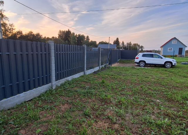 Земельный участок под Ижс, площадь 1900 м кв., размеры: 122,47х14,62х122,50х16,50 м. Участок огорожен с 3-х сторон деревянным забором с бетонным цоколем, оборудован откатными воротами длиной 5 м, имеются две калитки. Участок поднят и выровнен.
