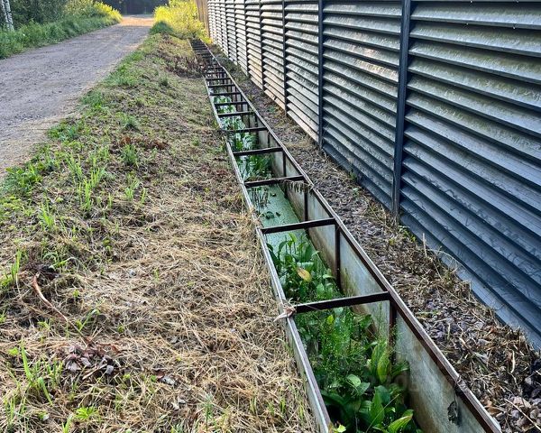 Участок выбирал долго, порядка полу года, пересмотрел порядка 18 вариантов, на каждом делал пробное бурение, чтобы понять, что в разрезе грунта. Остановился в итоге на этом участке, и вот почему: Садоводство очень похоже на коттеджный посёлок, оно маленькое и находится в лесу, в шаговой доступности хорошая асфальтированная дорога (КАД 2), автобусная остановка и ж/д станция. Внутри садоводства везде сделаны придорожные канавы, дороги широкие, 2 машины разъезжаются без проблем, при въезде в массив обустроена мусорная площадка, которая вывозится по мере наполнения. В массиве центральный (городской) водопровод, и современные электрические линии, газовая труба проходит вдоль массива. У всех хорошие дома и практически весь массив живёт здесь на ПМЖ. На участке смешанный лес (сосна, ель, берёза, ольха), - летом, когда всё распускается, очень красиво и уютно. Растительный слой 20 30 сантиметров, далее на глубину 2 метров залегает песок (глубже не бурил), и поэтому весной участок не тонет. Вдоль участка идёт придорожная канава. Сделан заезд.