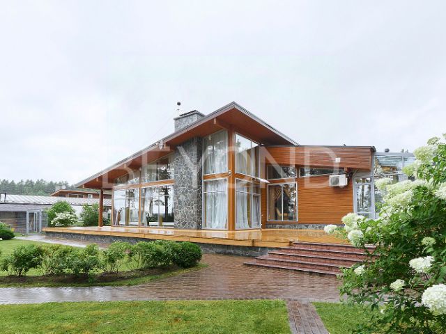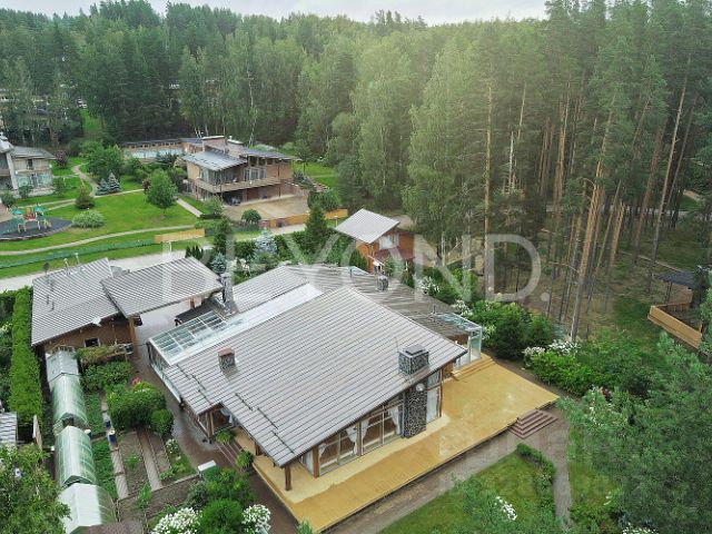 Представляем вашему вниманию домовладение, воплощающее идеал загородного отдыха и особое место для вашей души. Этот комплекс сооружений расположен на участке площадью 40 соток, окруженном зеленью плодовых и хвойных деревьев, ухоженным газоном и чарующими видами Суходольского озера. Основной дом общей площадью 448 кв. м выполнен из высококачественного клеенного бруса, построен в 2016 году. Пространство первого этажа наполнено светом и простором, двухсветная гостиная с камином и панорамным остеклением позволяет наслаждаться природными красотами круглый год. Кухня-столовая с выходом на террасу 100 кв. м, откуда открывается потрясающий вид на собственный участок и озёрную гладь, создавая неповторимую атмосферу домашнего тепла и гостеприимства. Четыре спальни, три санузла, гардеробная, постирочная и техническое помещение. На втором этаже мастер-спальня с гардеробной и санузлом. Вдохнуть аромат свежести озера и насладиться теплом русской традиции можно в бане КЕЛО площадью 120 кв. м. Окруженная живописными пейзажами, эта баня предлагает незабываемый опыт отдыха и релаксации благодаря своему панорамному остеклению и виду на озеро. Попав внутрь, вас сразу же окутают успокаивающие ароматы древесины и целебных трав, создавая атмосферу полного умиротворения. Просторная терраса приглашает насладиться вечерним закатом, а уютная комната для массажа позволит вашему телу полностью расслабиться. Особое внимание заслуживает великолепная парная с банной печью EASYSTEM, создающая идеальный микроклимат для оздоровления организма. После горячего пара освежитесь в холодной купели или окунитесь в открытый подогреваемый бассейн, наслаждаясь ощущением свободы и гармонии. Комфорт проживания обеспечивается всеми необходимыми коммуникациями: электричество 30 кВт, центральное водоснабжение, газгольдер, автономная система отопления с теплыми водяными полами и конвекторами, кондиционирование воздуха. Для гостей предусмотрен отдельный домик площадью 80 кв. м. Гараж на два автомобиля обеспечивает удобство хранения транспортных средств, также имеется навес для дополнительного хранения. Особое внимание нужно уделить коттеджному поселку Сосны, в котором есть все для активного отдыха всей семьей: детская и спортивные площадки, оборудованный пляж, охраняемый пирс, заправка для катеров, вертолетная площадка, магазин, ресторан, апартаменты для гостей. Здесь вы всегда найдете компанию для рыбалки, катанию на гидроциклах и снегоходах, а также прогулок по лесному массиву. Протяженность поселка по береговой линии Суходольского озера составляет 3 км. Рядом загородный клуб "Дача" и премиальный курорт Marja Villas SPA. Расстояние до КАД - 80 км.