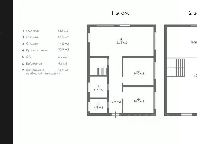 Кухня гостиная с панорамными окнами - 22,7 кв. м. Две спальни - 10 кв.м и 8,9 кв. м. между ними просторная гардеробная - 9 кв. м. Санузел раздельный, качественная и красивая плитка - керамогранит. В доме также есть техническое помещение под хоз. нужды и отдельно котельная.