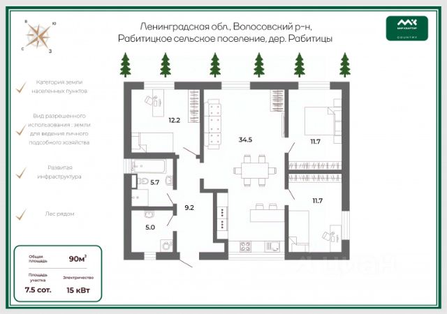 3) участок 3 - площадь 1522 кв.м, кадастровый номер 47:22::34, ЛПХ. Находится с задней части дома, используется под огород. Имеет подъезд со стороны леса.
