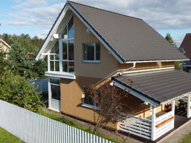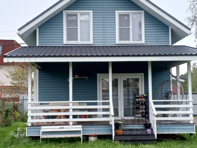 Дом построен из сухого профилированного бруса 70*145, собранный по технологии двойная стена с заполнением теплоизоляционным материалом эковата. Покрашен по финской технологии финской краской Tikkurila. Кровля - металлочерепица, фундамент - свайный с ростверком. Окна пластиковые - двойные стеклопакеты. Кадастровый номер участка 47:07:1045005:520, кадастровый номер дома: 47:07:1045005:1560. Дом подключен к газу, воде, электричеству 15 кВт. В посёлке есть оптоволоконный интернет. На 1-м этаже большая комната с залом и местом под камин, спальная (или веранда), большая газовая котельная, в которой можно разместить стиральную машину и т.п.. Есть сауна, зона отдыха у сауны . На втором этаже - три спальных комнаты и комната -салон. На каждом этаже санузлы с душевыми. Навес на два автомобиля. Участок правильной формы, огорожен со всех сторон. Остаётся только установить кухню и мебель, повесить люстры, занавески и можно жить. Расположен в коттеджном посёлке Дружное. Посёлок обжитой. Расположен рядом с городом в Колтушском сельском поселении во Всеволожском районе Лен. обл. южнее д. Ексолово. 17 км от КАД по Мурманскому шоссе. От м. Ладожская ходит автобус 429 до п. Озерки. Также удобная транспортная доступность от метро ул. Дыбенко. До посёлка можно доехать на маршрутке К-801. Доехать можно и на электричке от Ладожского вокзала до ст. Манушкино (время в пути 30 минут). На автомобиле от КАД дорога занимает 15 минут. От Мурманской трассы посёлок отделен лесом глубиной около 3 км. На расстоянии 2 км есть красивейший песчаный карьер. До леса 5 минут. Неподалеку от поселка есть небольшой частный аэродром, на котором можно арендовать двухместные самолеты. Также поблизости есть горнолыжный склон "SnowPark" (протяженность склона 400м) с детским и взрослым бюгельным подъёмником) и Невский лесопарк площадью 600 Га. В расположенной не далеко деревне Разметелево есть поликлиника, школа, детский сад, магазины, кафе, рестораны, почта, банк, церковь, полиция, спортивные площадки и секции. В посёлке Дружное построены дороги, газопровод, водопровод, двухсторонний дренаж закрытого типа, поданы электричество, газ, а вода бесплатно. Проложена оптоволоконная линия интернет. Транслируется кабельное телевидение и телефония. Действуют круглосуточный пост охраны. Работает круглогодично магазин. В посёлке построена противопожарная система. Посёлок обслуживается управляющей компанией, которая в 2018 и 2019 году Ассоциацией риэлтеров Санкт-Петербурга и ЛО названа лучшей управляющей компанией коттеджных посёлков в Ленинградской области. За 2018 года победа присуждена за достижения по управлению КП Дружное. Посёлок построен известным и надёжным девелопером ООО "1-я Академия недвижимости".