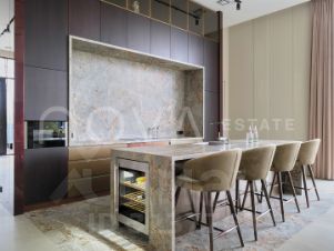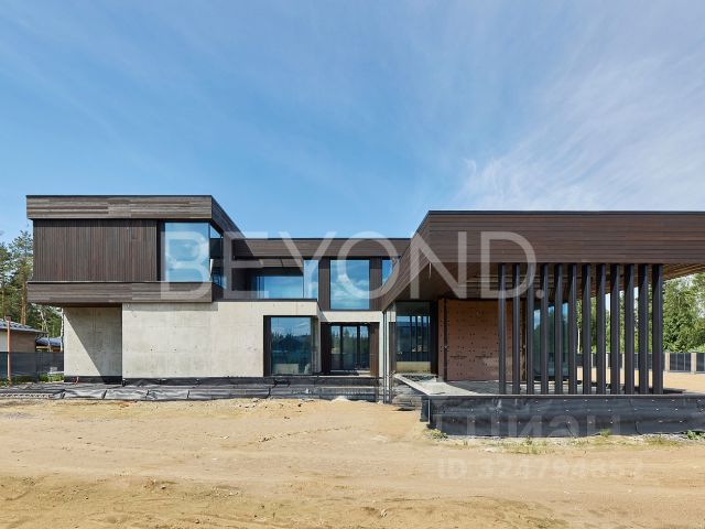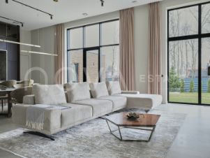 Арт. 125216460 В посёлке "Репино Парк" предлагается современный одноэтажный дом, спроектированный как цельное пространство света, объёма и геометрической ясности. Архитектура решена в духе минимализма: чистые линии, открытые фасады, нейтральная палитра и предельное внимание к деталям — от отделки до инженерии. Площадь дома — 430,7 м², участок — 15 соток с завершённым ландшафтом и автоматическим поливом. Дом построен на монолитной плите толщиной 350 мм, стены монолитные + газобетон ЛСР 400 мм, кровля — монолитная с утеплением. В отделке фасада использованы керамогранит, натуральная лиственница и планкен — материалы, которые органично взаимодействуют с окружающим ландшафтом. Панорамные алюминиевые окна Alutech с тонким профилем наполняют интерьер светом и соединяют внутреннее пространство с природой за пределами стекла. Главная гостиная объединена с кухней-столовой и каминной зоной. Здесь высота потолков достигает 4,2 м, а линейное остекление акцентирует масштаб и горизонталь. Встроенный камин с широкой топкой (1,5 м) становится визуальной точкой притяжения. Основная кухня оформлена лаконично, без избыточных акцентов, вся техника — Miele, Liebherr и Neff. Рядом расположена cheff-кухня с профессиональным оборудованием из нержавеющей стали и отдельным техническим входом, удобным для персонала или доставки. Планировка выстроена с логичным разделением на приватную и гостевую зоны. В доме — мастер-спальня с собственным гардеробом и ванной комнатой, две полноценные детские мастер-спальни, каждая с окнами в пол и личными санузлами, а также отдельная гостевая спальня. Предусмотрен кабинет, постирочная зона с техникой Miele, гардероб при входе и технические помещения. Инженерия соответствует городскому уровню комфорта: приточно-вытяжная вентиляция с рекуперацией, водяной тёплый пол с антифризом, внутрипольные конвекторы, система снеготаяния на въезде. Управление котельной возможно через смартфон, в доме частично внедрена система умного дома на платформе "Алисы". На участке выполнен законченный ландшафтный проект: высажены туи, сосны, клены, плодовые деревья, гортензии и ель. Встроено наружное освещение, организован автополив, выделены зоны для террасы и отдыха. Въездная зона выполнена с учётом снеготаяния, что обеспечивает комфорт в зимний период. Гараж рассчитан на два автомобиля, с прямым доступом в дом. Здесь же размещена котельная, кладовая и хозблок. Этот дом для тех, кто ценит пространство, где каждая линия выверена, каждый материал выбран осознанно, а комфорт — не временное состояние, а постоянный стандарт.