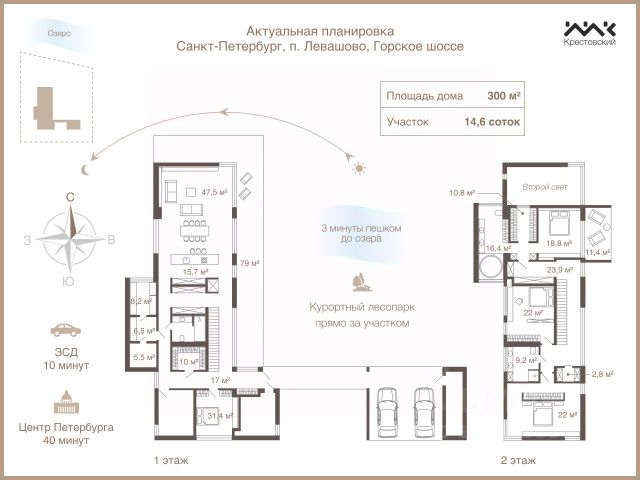 Участок ровный, сухой, с дренажом, огорожен забором с откатными воротами. Натуральный лесной массив — где растут грибы и ягоды. Высокий уровень безопасности — видеонаблюдение по периметру.