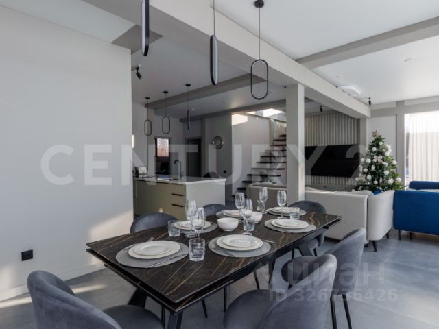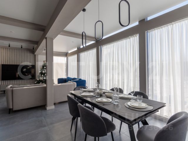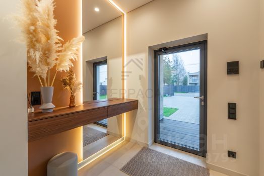 Дом-Храм с уникальной архитектурой в форме креста: южный фасад — это классическая русская усадьба из светлого камня с бельведером и светящейся скульптурой Ноя; Северный фасад, обращенный к воде, в своих формах повторяет русскую усадьбу, но выполнен с панорамным остеклением двусветного зала, открывающим невероятный вид на акваторию Финского залива. Перед северным фасадом высажен фруктовый сад. Южный фасад Дома-Храма охраняют скульптуры львов, перед ними установлен памятник Трезини. Это дом, где вы выбираете настроение каждый день. Площадь Дома-Храма 383 метра и включает в себя 2 этажа, спальни, гостиные зоны.