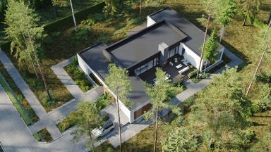 Жилая часть это прежде всего простор и комфорт (кухня-столовая-гостиная 115,1 м2, кабинет (гостевая), а также спа-зона), а в спальной части вы найдете просторную мастер-спальню с гардеробной и ванной, две спальни с отдельным санузлом и ванной, а также великолепный вид из окон на сад и сосновый лес.